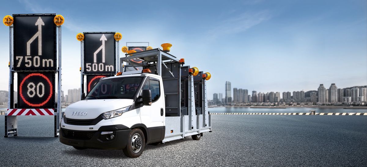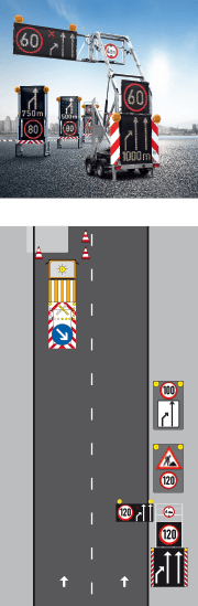 Das von Nissen entwickelte Drop & Pick System ermöglicht die komplette Absicherung ganzer Arbeitsstellen mit nur einem Fahrzeug und einer Kraft und macht das Eintreten in den Verkehrsraum überflüssig.