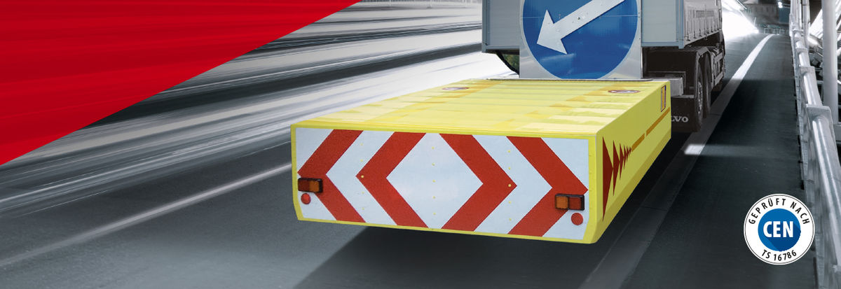 Sichern Sie komplette Arbeitsstellen im Straßenverkehr mit nur einer Arbeitskraft und einem Fahrzeug ab. Mehr Effizienz geht nicht.